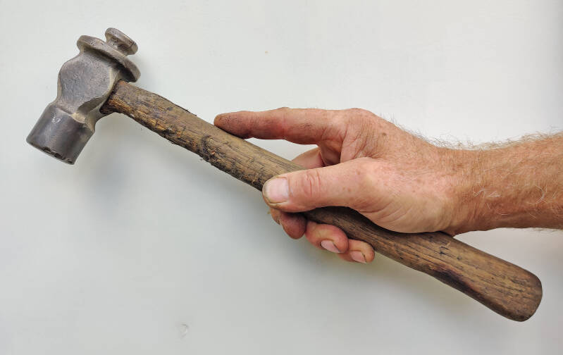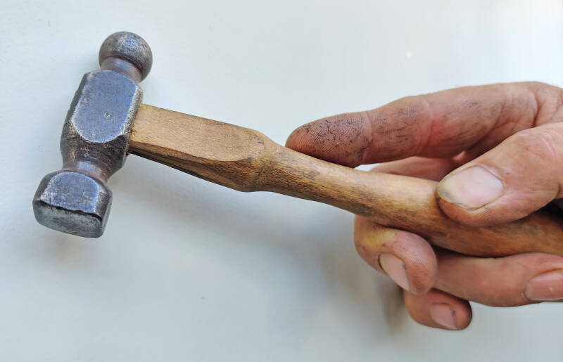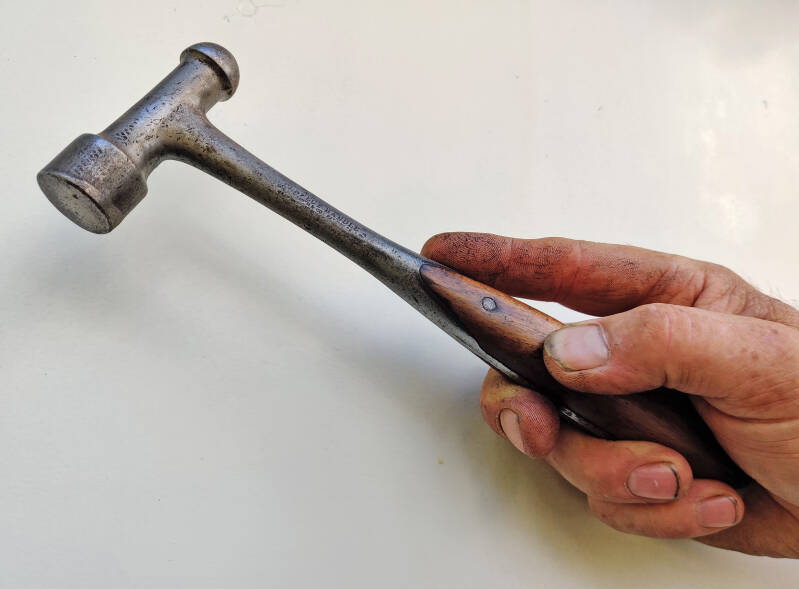 Koperslagers hamer, kop en steel vloeien heel mooi in elkaar over.